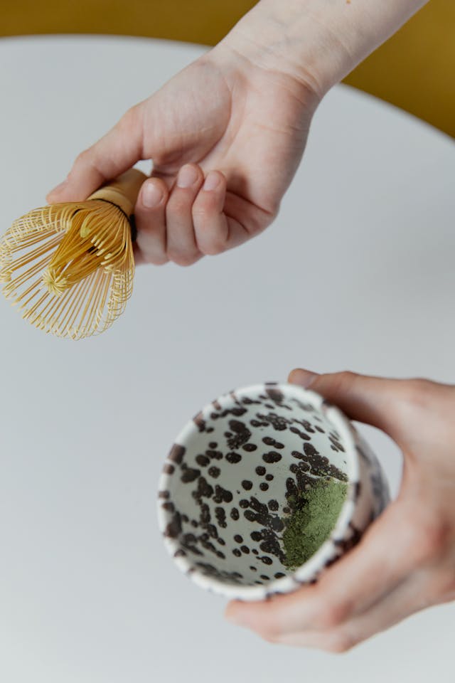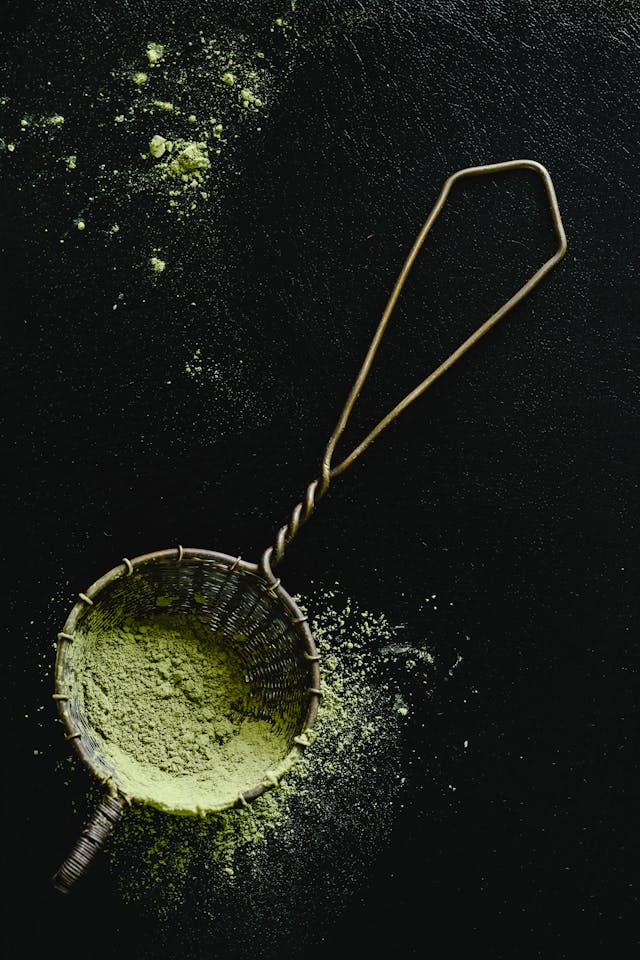 말차는 잎이 가루 상태로 만들어지기 때문에 녹차와 달리 가루로 보입니다. 일반적으로 미세하고 초록색의 가루로 나타납니다.